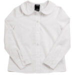 Easy-care blouse is topped by rounded Peter Pan collar. Button placket. Cotton/polyester wrinkle-resistant. Imported. Machine wash.